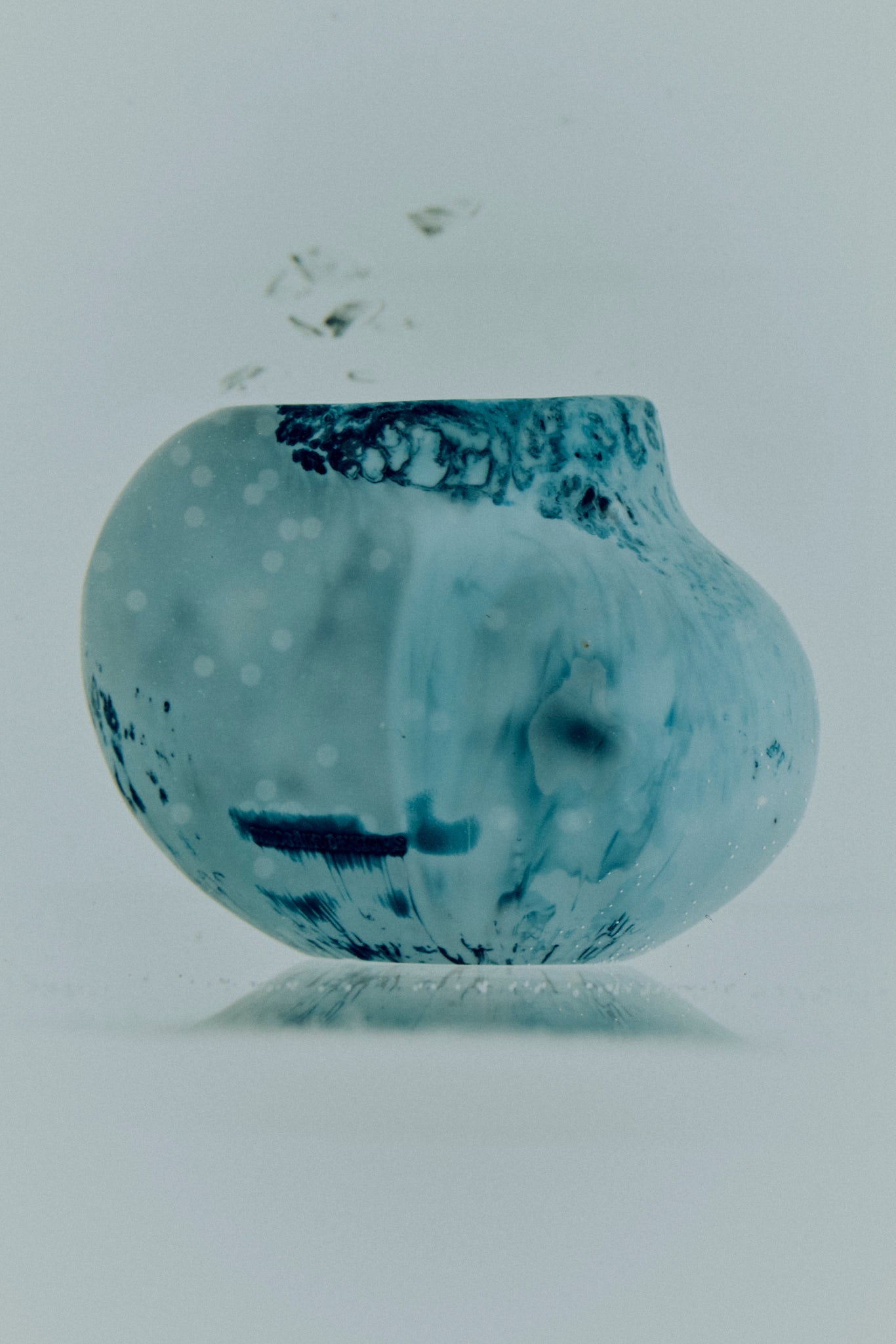 The Small Moss Vase, with its bulbous form, is designed for single stems and delicate blooms.