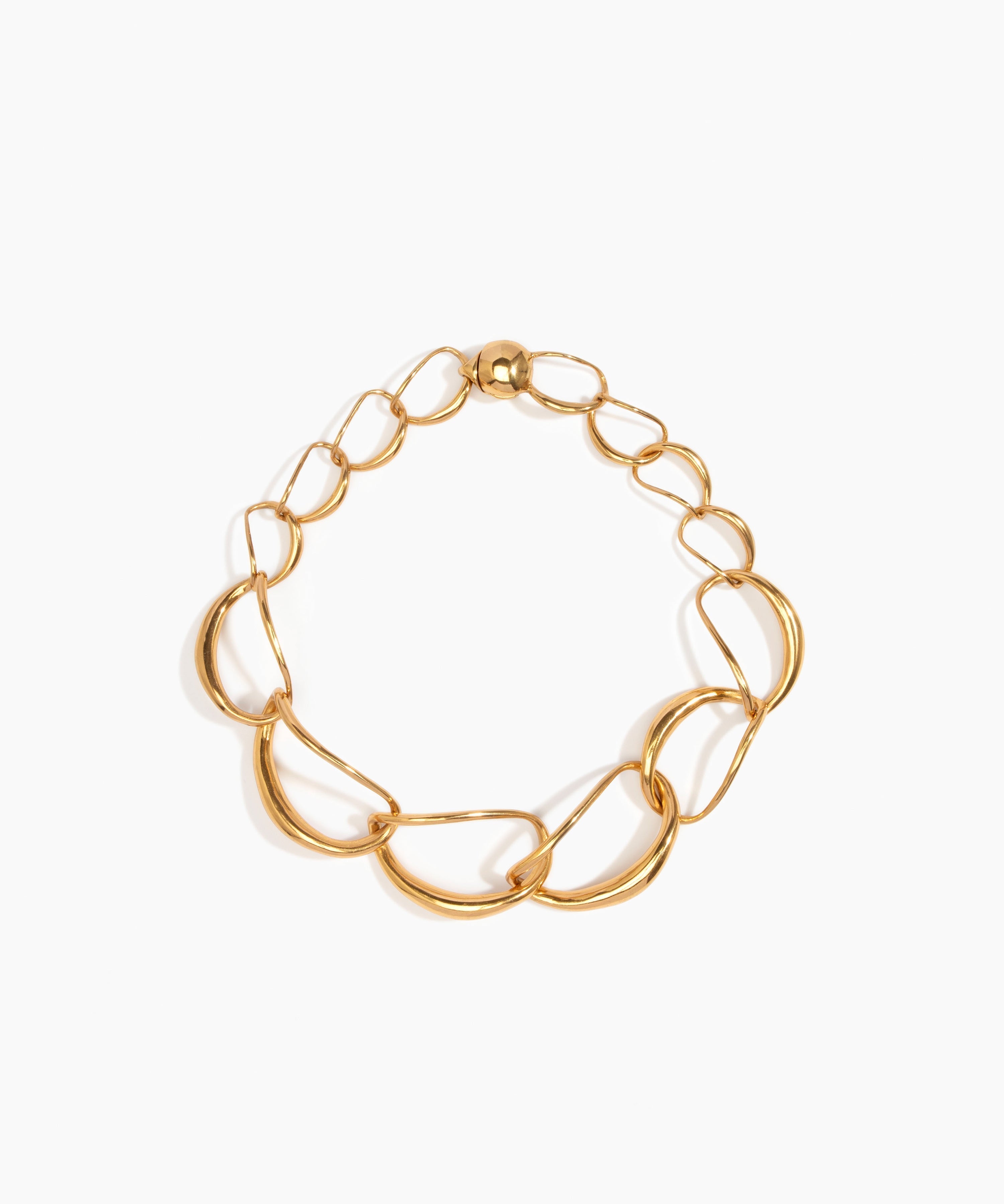 Introducing the Liquid Chain Choker—a plated 24k gold or 925 sterling silver piece by Louise Olsen. It delicately drapes the neckline and radiates timeless elegance, securing with ease through a magnetic snap closure.