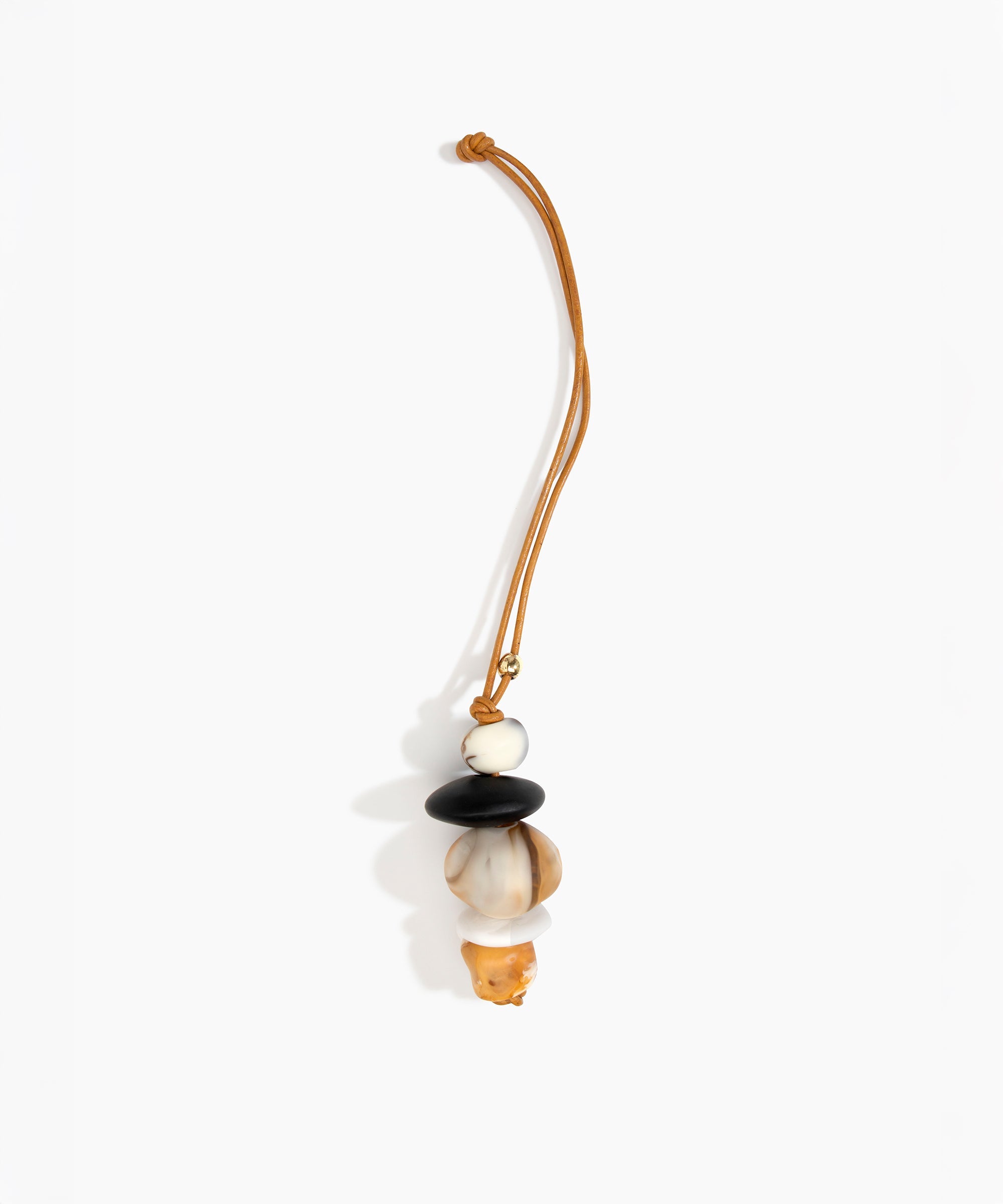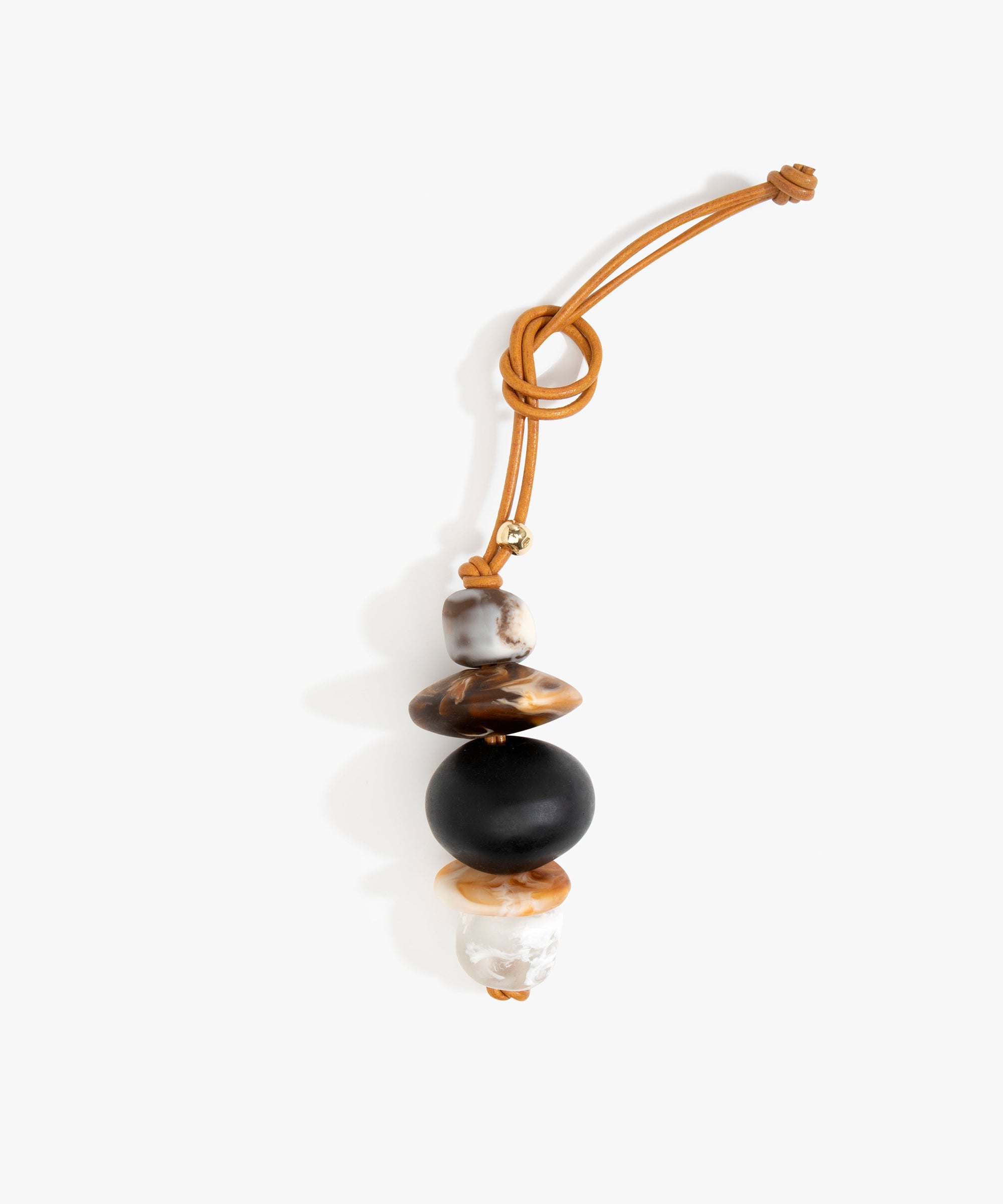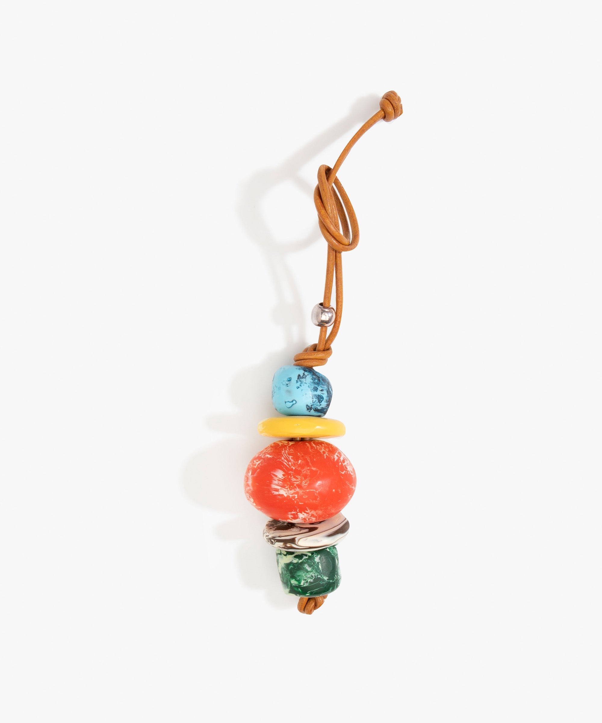 The stacked resin beads Splash Decoration are the focus of this leather accessory, best styled as a charm for added personalisation for an iconic and distinctive look.