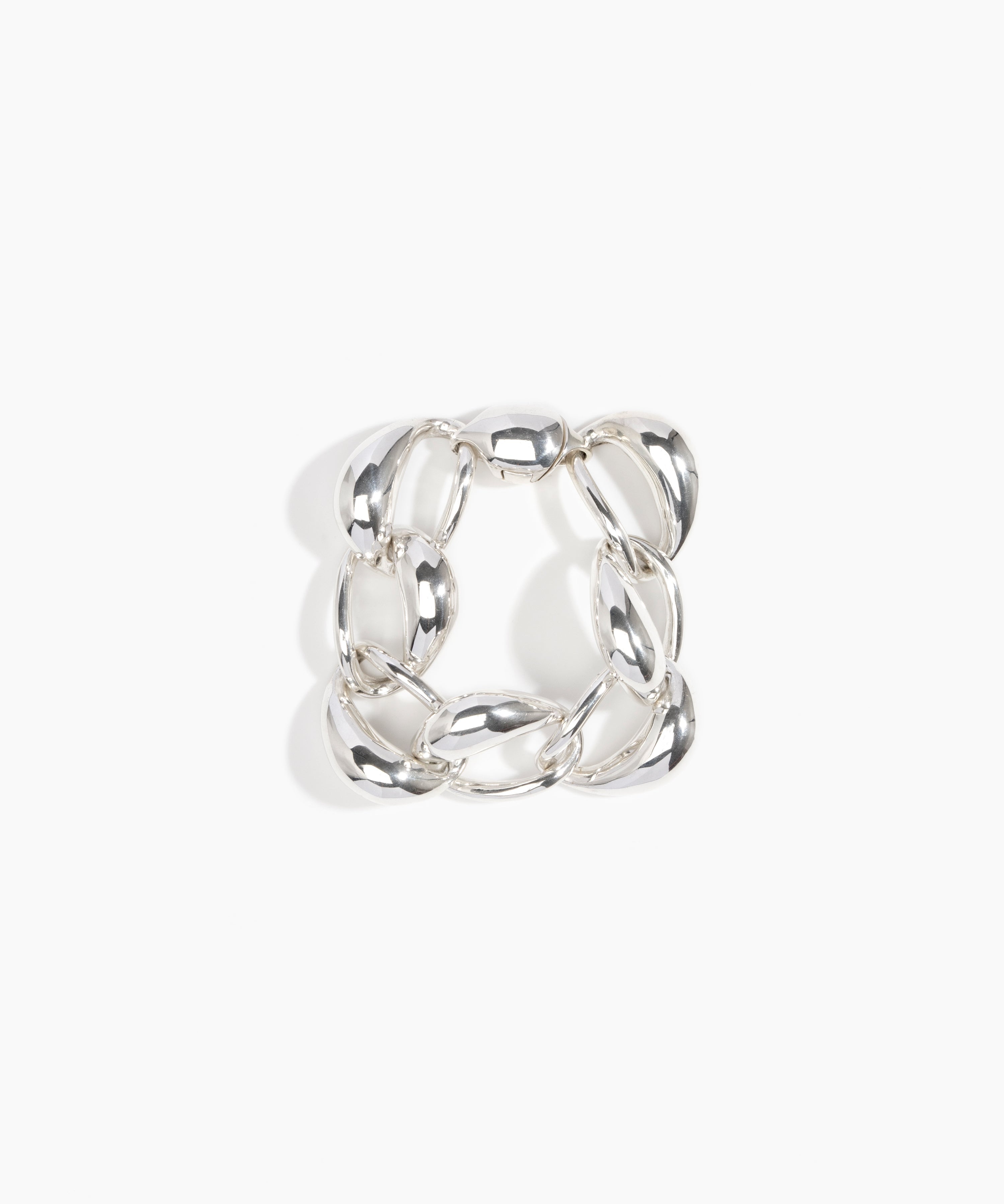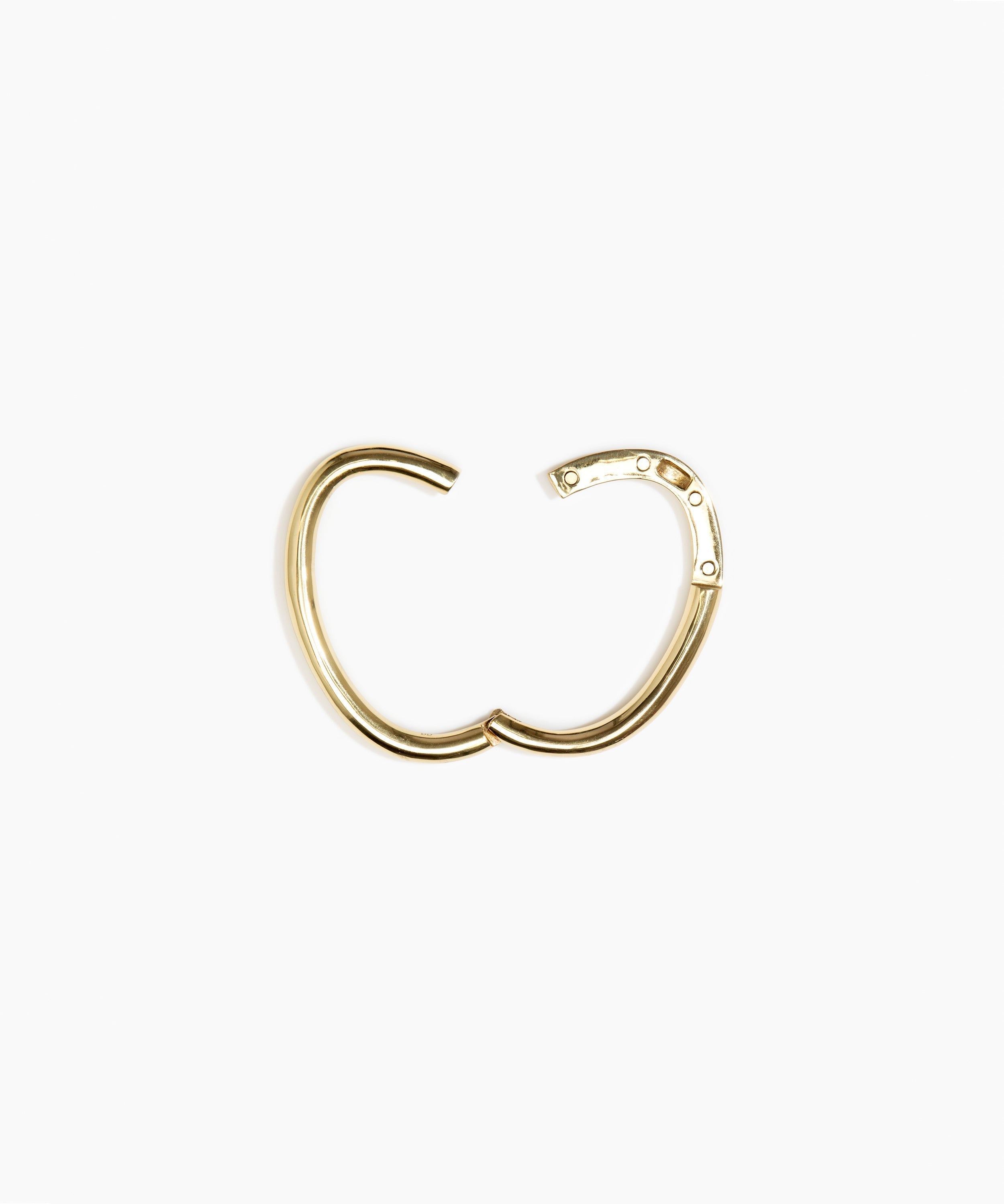 The Rock Cuff’s sleek, ovoid form hugs closely to the wrist. Its subtle hinge can be used to slide over the wrist, instead of the hand for a closer fit, fastened with a magnetic closure.