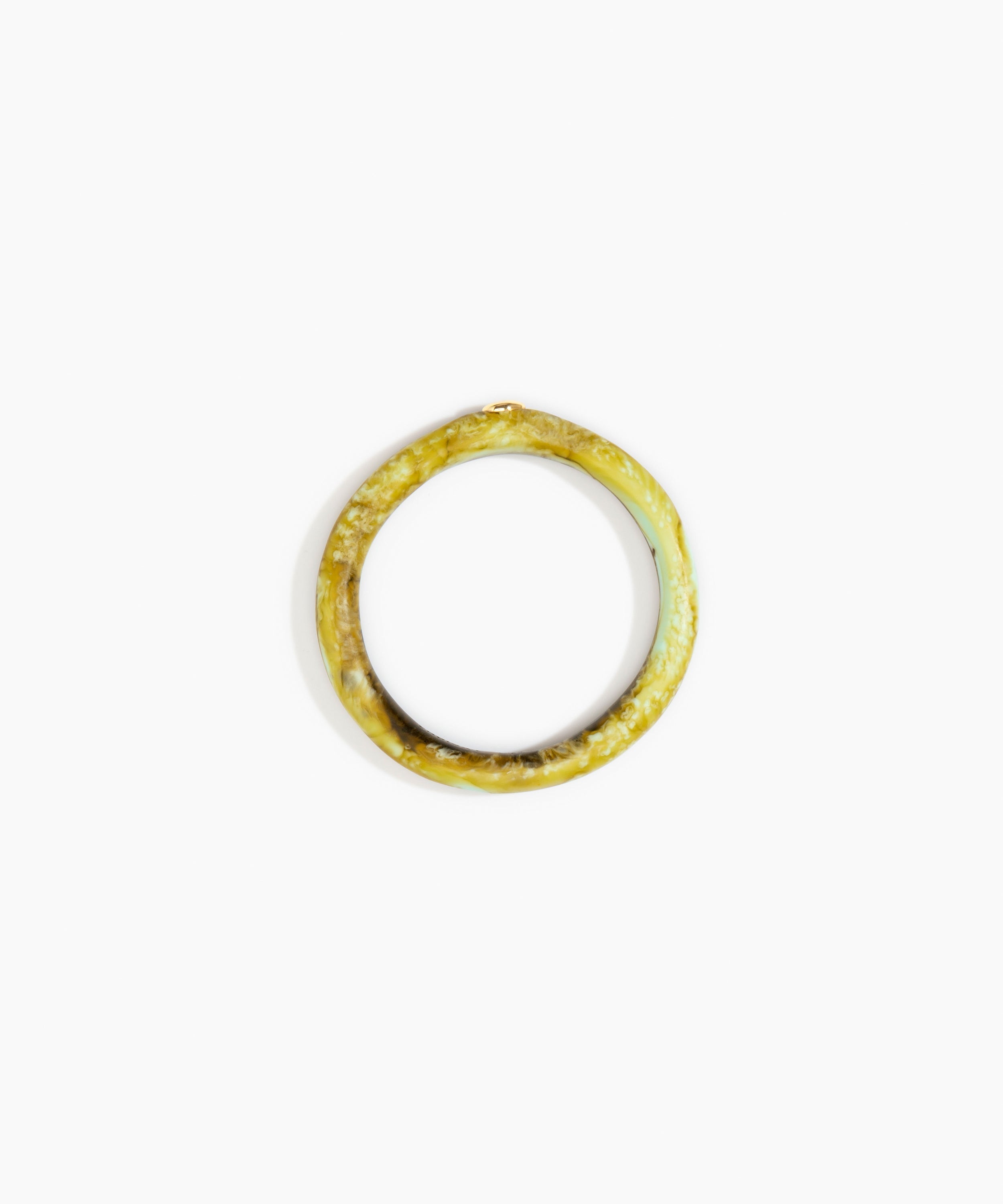 Our Round Rock Wishbone's smooth profile is embellished with a 12K gold-plated brass bead, creating textural interest of both swirls and shine. This thin style elegantly catches light when paired amongst other resin bangles in a stack.